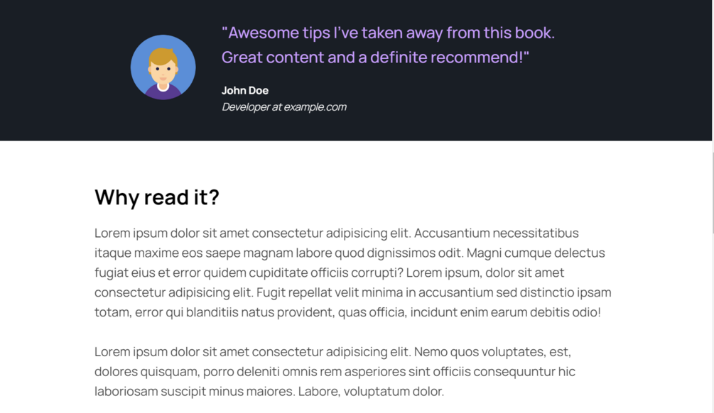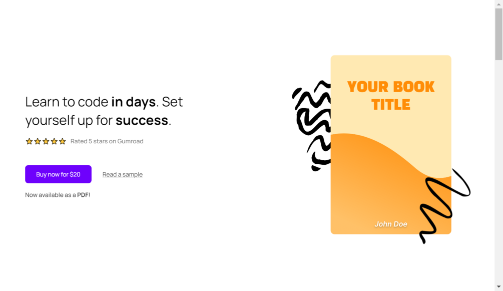 Doodley is a simple landing page to showcase your book. It comes with features such as testimonials, a star rating, and table of contents. It's a great theme to get your work out into the public with ease!